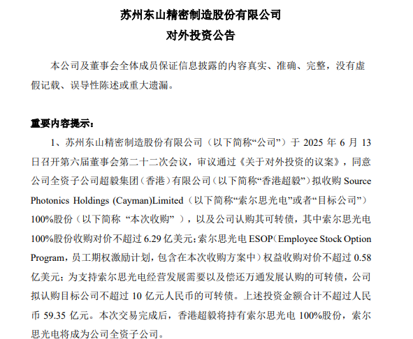 而早在6月之前,东山精密就打算用总价不超过59.35亿元的钱去收购索尔思光电,让公司更快进入到光通信市场当中。